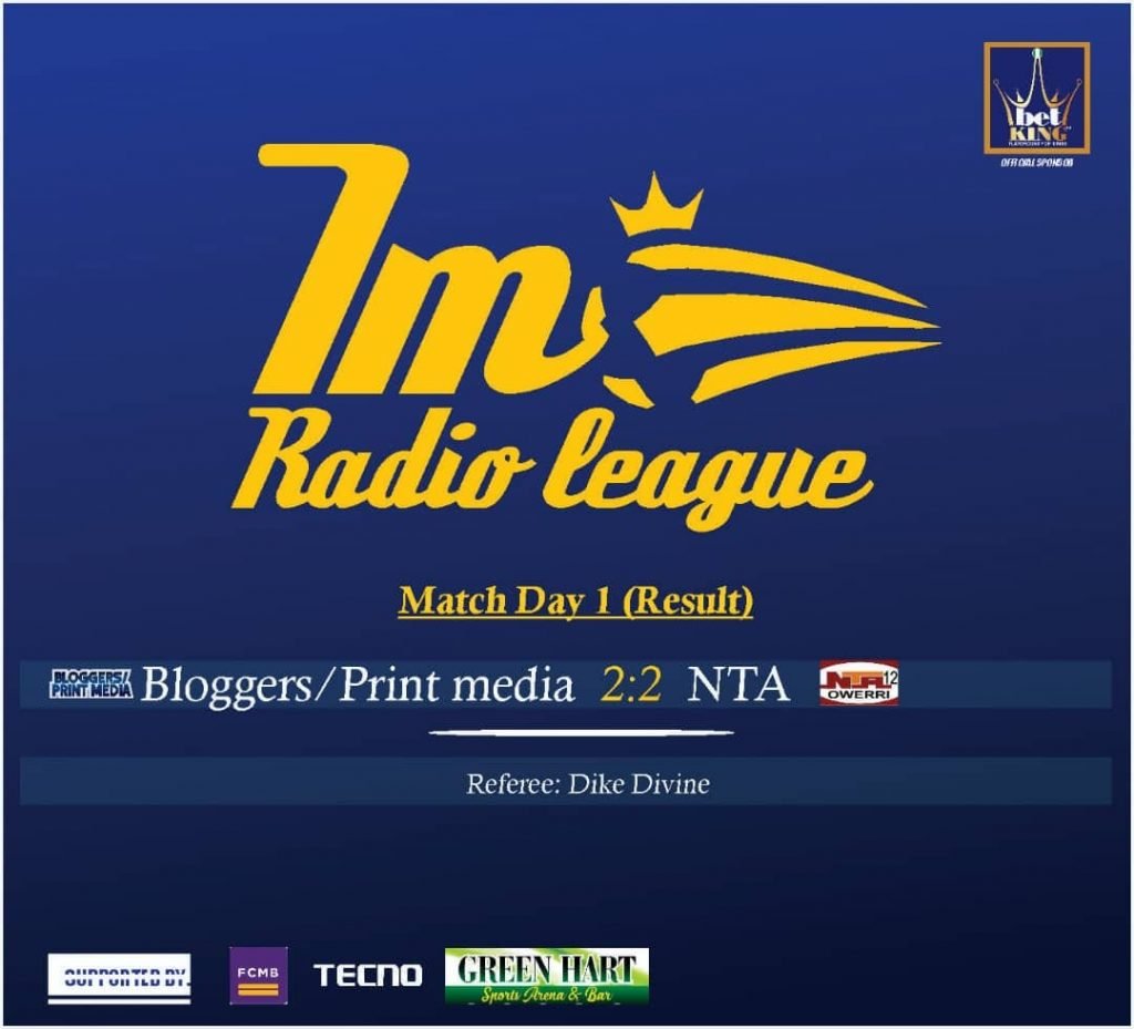On Sunday, the third match of the Imo Radio League saw two guest teams Bloggers/Print Media and NTA Owerri share the points in a four goal thriller where both teams had to score at either halves.