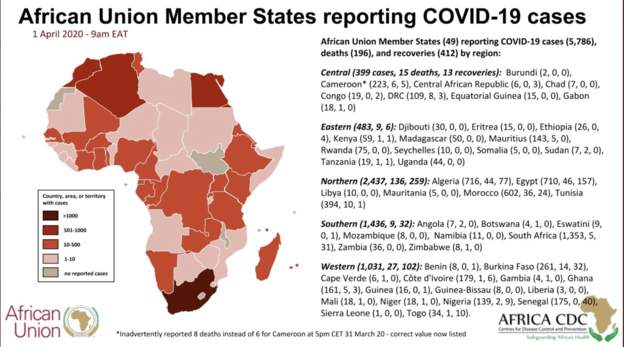 The Africa CDC, in its latest status reports, says the continent had just over 5,700 confirmed cases.