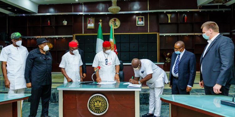 Imo State Governor Hope Uzodinma on Wednesday signed a Memorandum of Understanding with the construction giant Julius Berger Nigeria Plc for the reconstruction of the Orlu-Owerri and Owerri-Okigwe roads in the state.