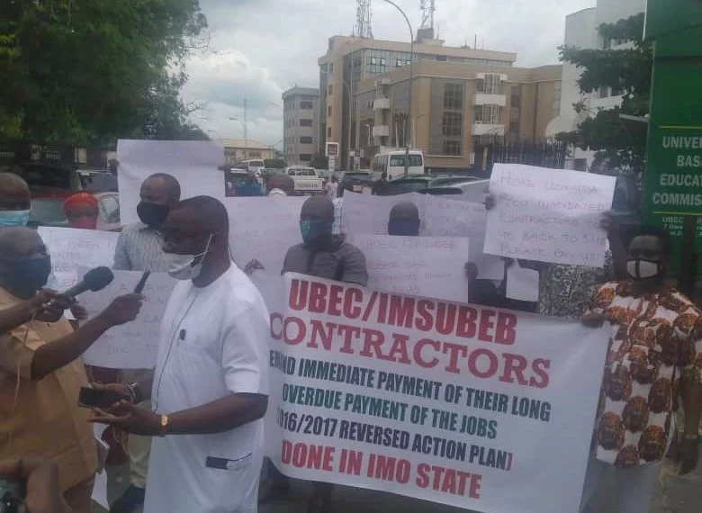 The contractors, who protested in front of Universal Basic Education Commission (UBEC) in Abuja, said that they were awarded contracts by the immediate past governor of Imo STATE, Rt Hon. Emeka Ihedioha to execute a number of projects such as renovation of schools, construction of new schools (primary schools and junior secondary schools) before the administration was sacked by the Supreme Court. But Senator Hope Uzodinma, who succeeded him, pleaded with the contractors to continue their projects, a development that persuaded them to borrow money from their banks to complete the projects.