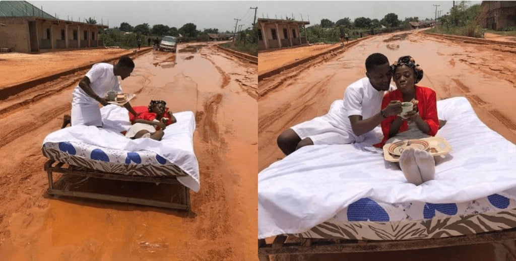 Posing with her comical husband ‘Orjisblog’ the duo’s fishing trip has raised further concern as to the state of roads in Imo State following several statements by the state government that the poor situation of roads in the state has been taken care of.