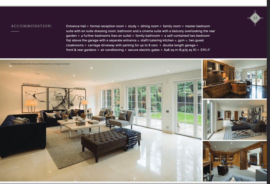 The 32 Grove End Road villa exudes stunning opulence. According to an advert brochure of the property released by popular United Kingdom real estate company, Savills, the estate is made up of two buildings – a five-bedroom property with a formal reception, a study, a master bedroom with an en suite dressing room, bathroom and a cinema suite with a balcony overlooking the rear garden. Two of the other four bedrooms in the property are en suite.