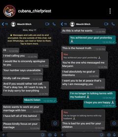 Cubana chief priest is still putting out receipts to back his claims, chief priest releases chat between maria and kelvin’s wife and also maria’s number