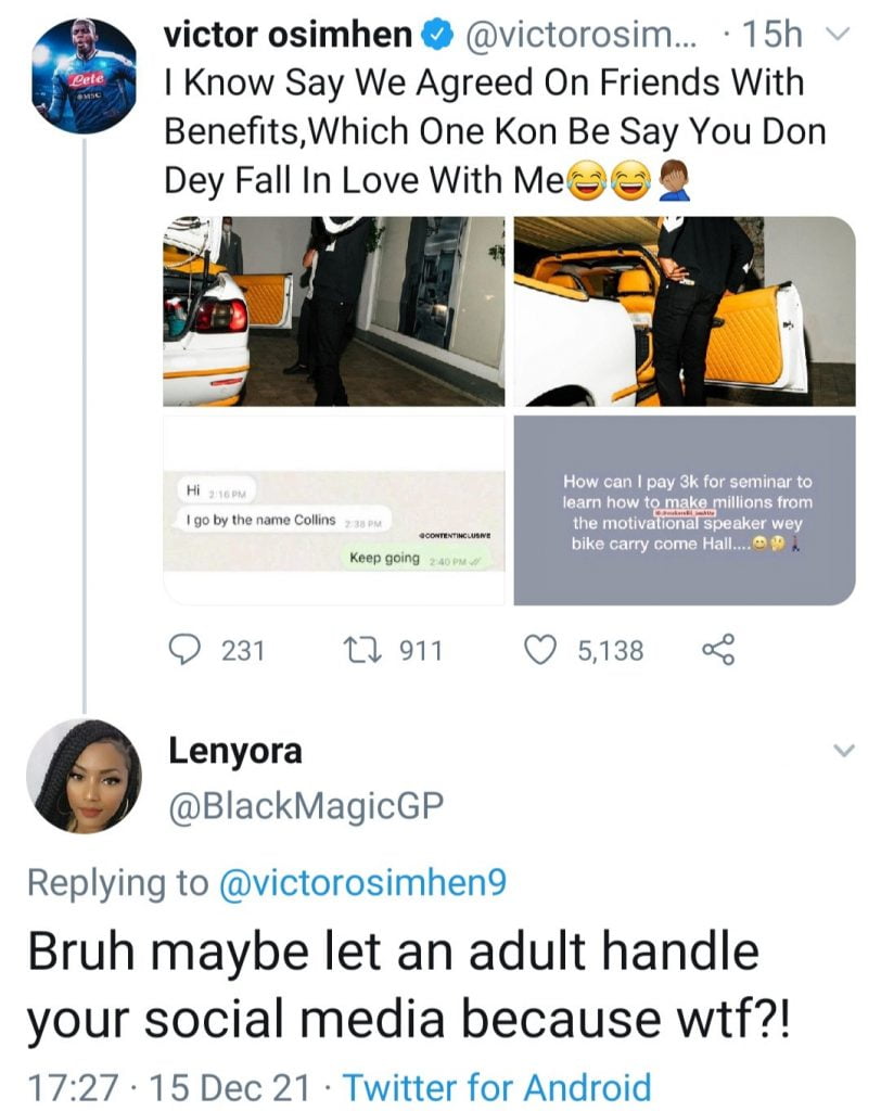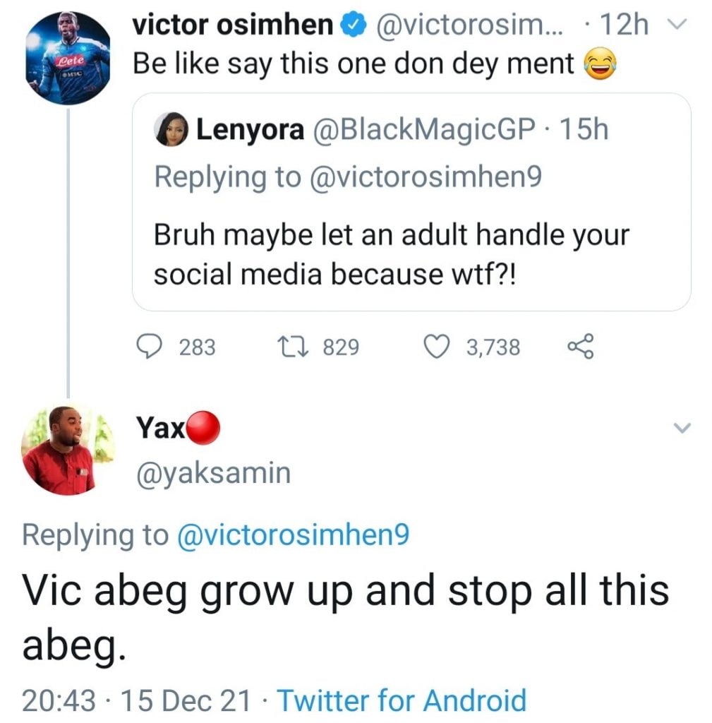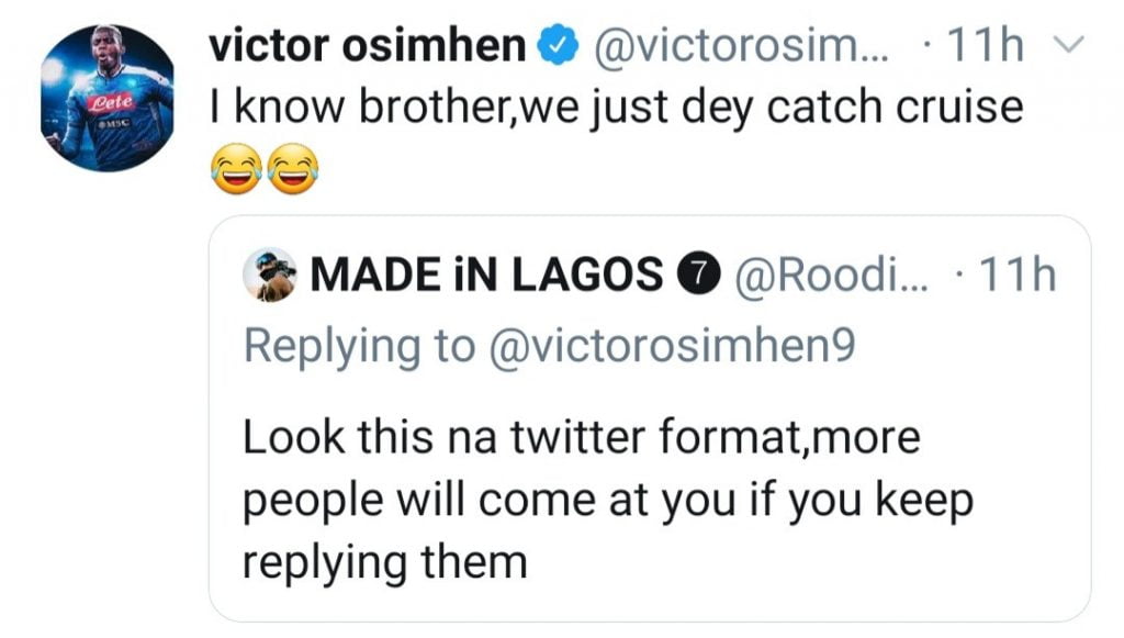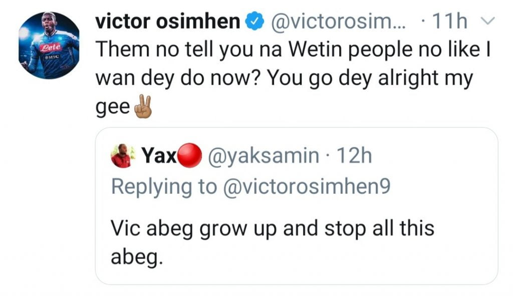 Victor Osimhen exchanged words with some Twitter users over his tweets.