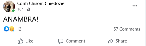 In the post made online where she wrote Anambra but went on the comment section to explain more about why she made the post.