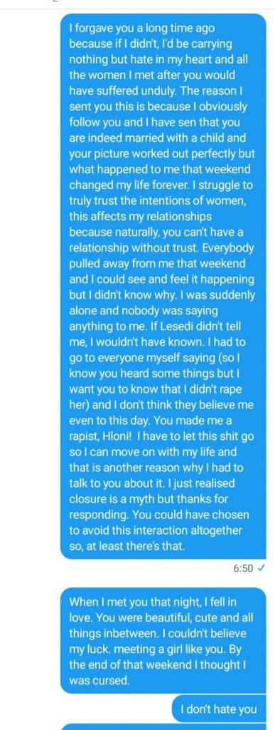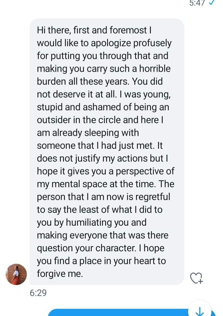 He took to Twitter to share his chat with a young woman he loved who accused him of rape years ago and caused everyone to hate him, only for her to later apologise privately to him, while he continued to live with the stigma.