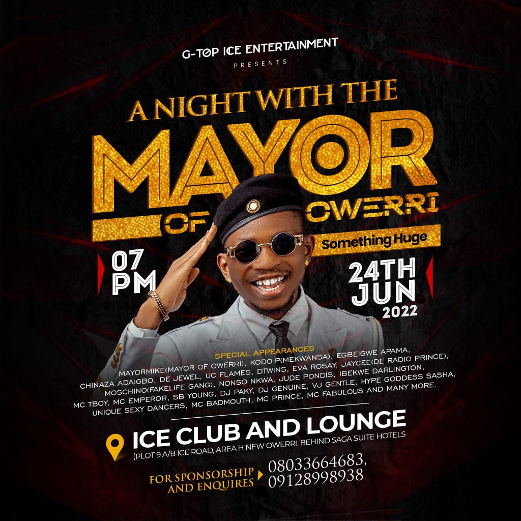 Mayormike Okafor popularly referred to as the Mayor of Owerri has alerted the beautiful people of Owerri of recent entertainment snow about to fall in the city.