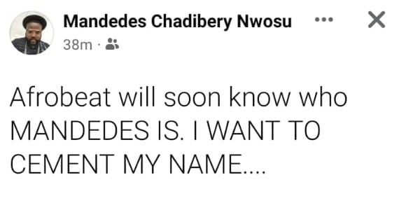 “Afrobeat will soon know who Mandedes is. I want to cement my name”, he wrote.