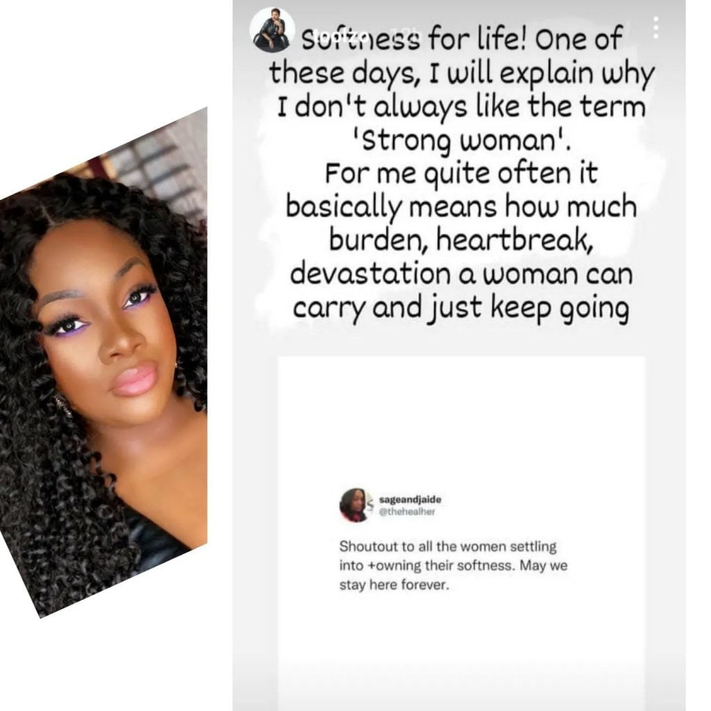 She made this statement on her IG and as a result, drew support from other women who also stated that the use of the term makes them know they are suffering.
