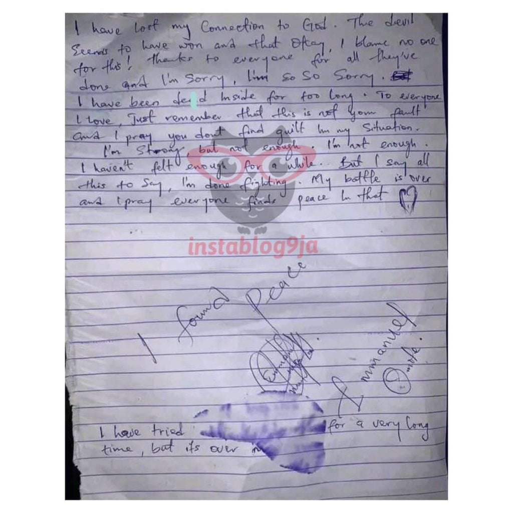 It was gathered that he ended it all at his residence in Abuja after battling life’s issues. A note he left behind indicated he felt he was a failure in life.