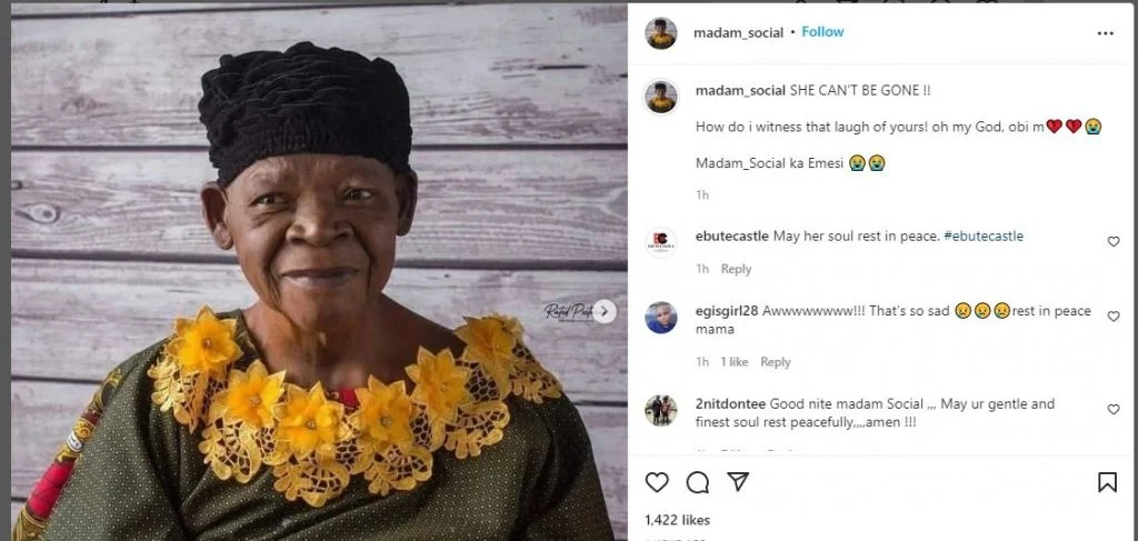 The social media comedienne, Mama Roseline Onwujekwe, also known as Madam Social, is dead.