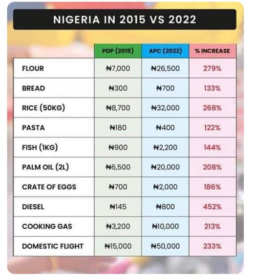 A Nigerian man has taken it upon himself to do an analytical review of the cost of products in 2015 and 2022 respectively.