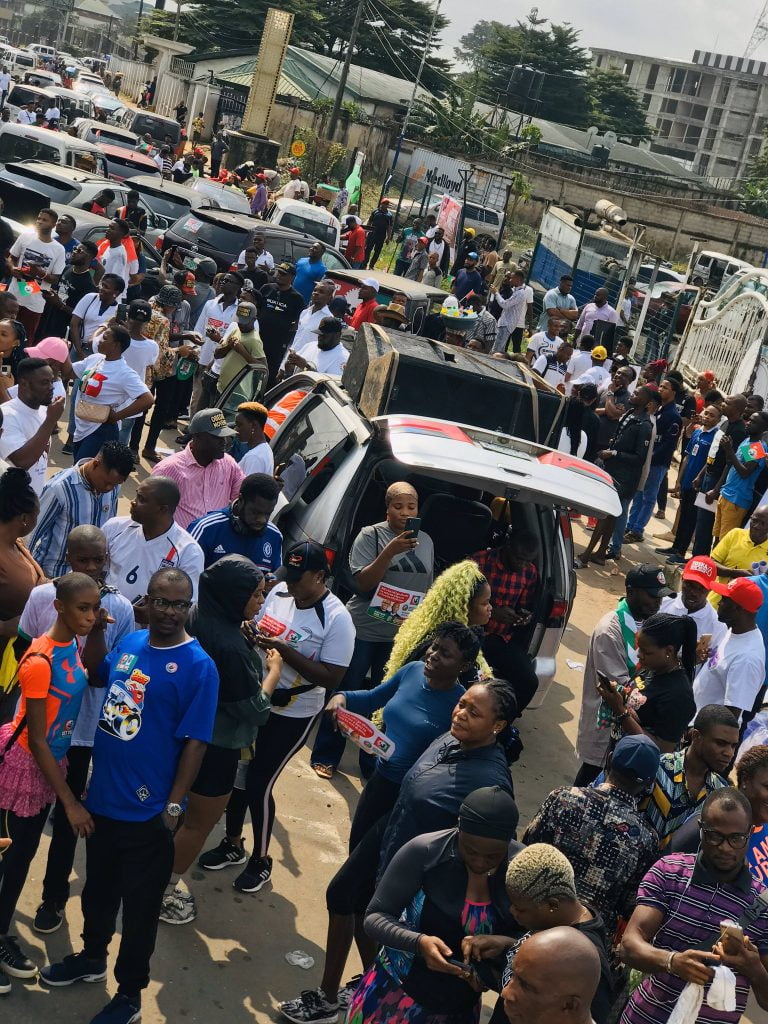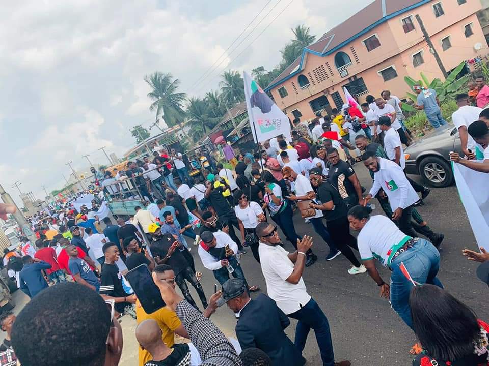 All major roads in Owerri are currently on lock down, Drivers abandoned their passengers and joined the movement with joy and happiness seeing this crowd.