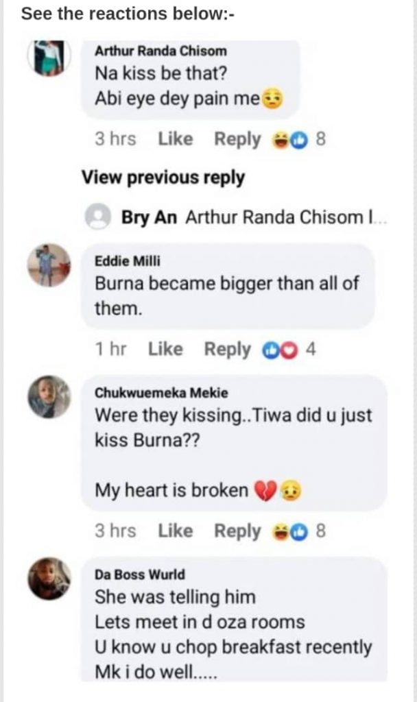 clip of the Grammy winner, Damini Ebunoluwa Ogulu alias Burna Boy, and the popular songstress, Tiwa Savage has triggered massive reactions from people.