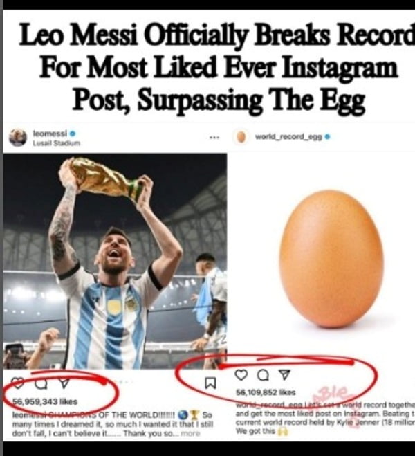 Previously, it had surpassed the most-liked post of an athlete. He was also involved in that, as Cristiano Ronaldo posted a Louis Vuitton picture of the pair playing chess, which has 42m likes.