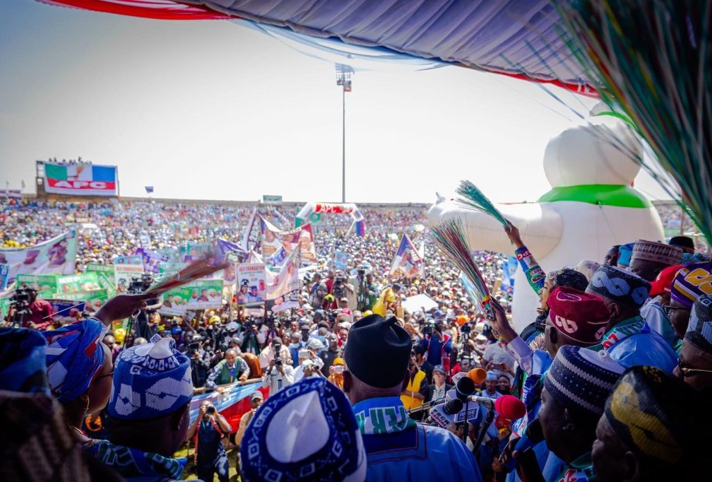 The All Progressives Congress, APC, presidential campaign train landed in Kaduna State on Tuesday with a large number of party supporters who thronged the campaign ground to drum support for the ruling party.