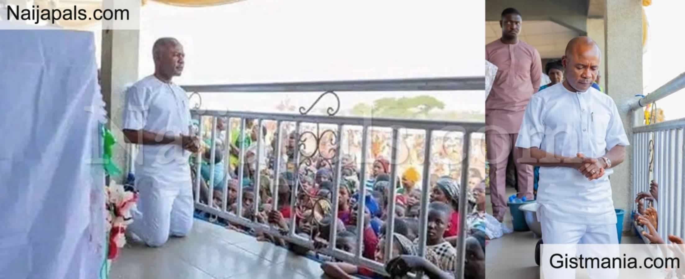 The Peoples Democratic Party (PDP) gubernatorial candidate, Peter Mbah has been reportedly spotted on his knees begging youths in Enugu State to vote for him in Saturday’s governorship election.