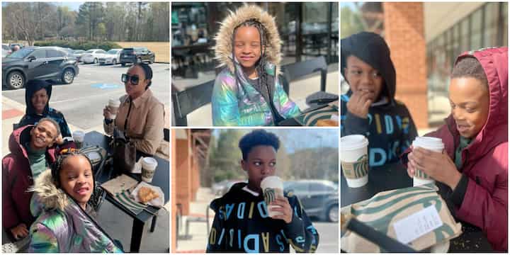 One of the photos shared captured the mum and her kids around a table as they treated themselves to hot chocolate and croissants.