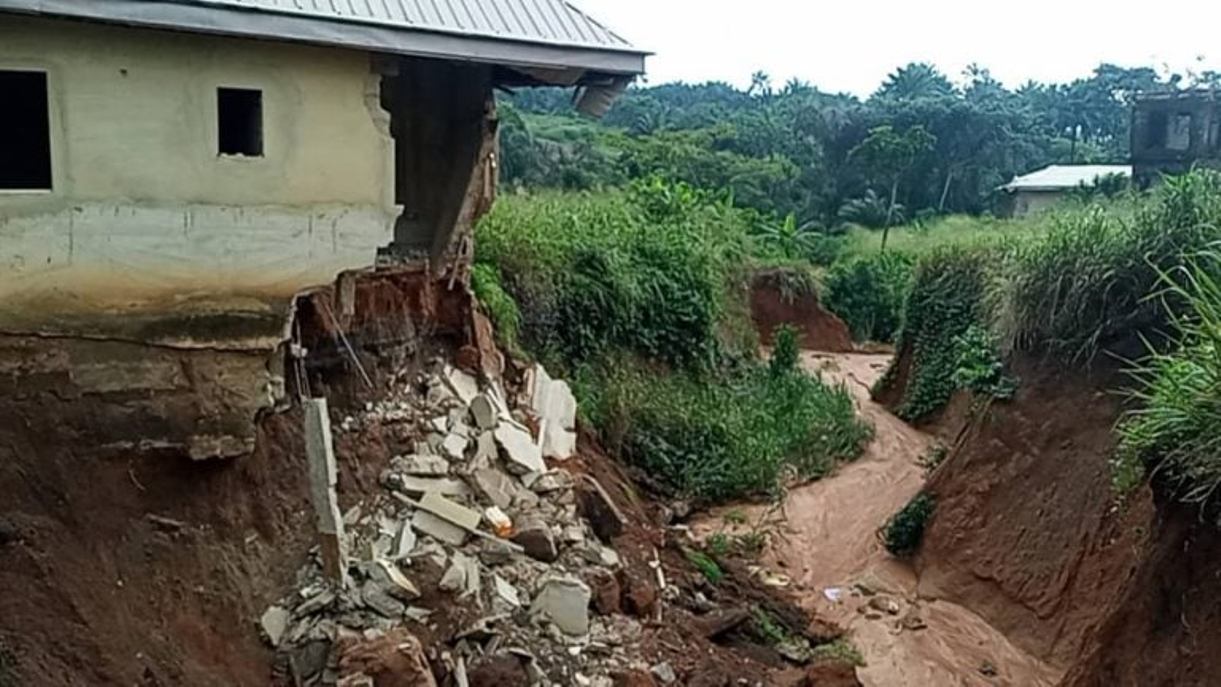 Three houses have been pulled down by rampaging erosion in Umobia Housing Estate, Umuahia South LGA of Abia State.