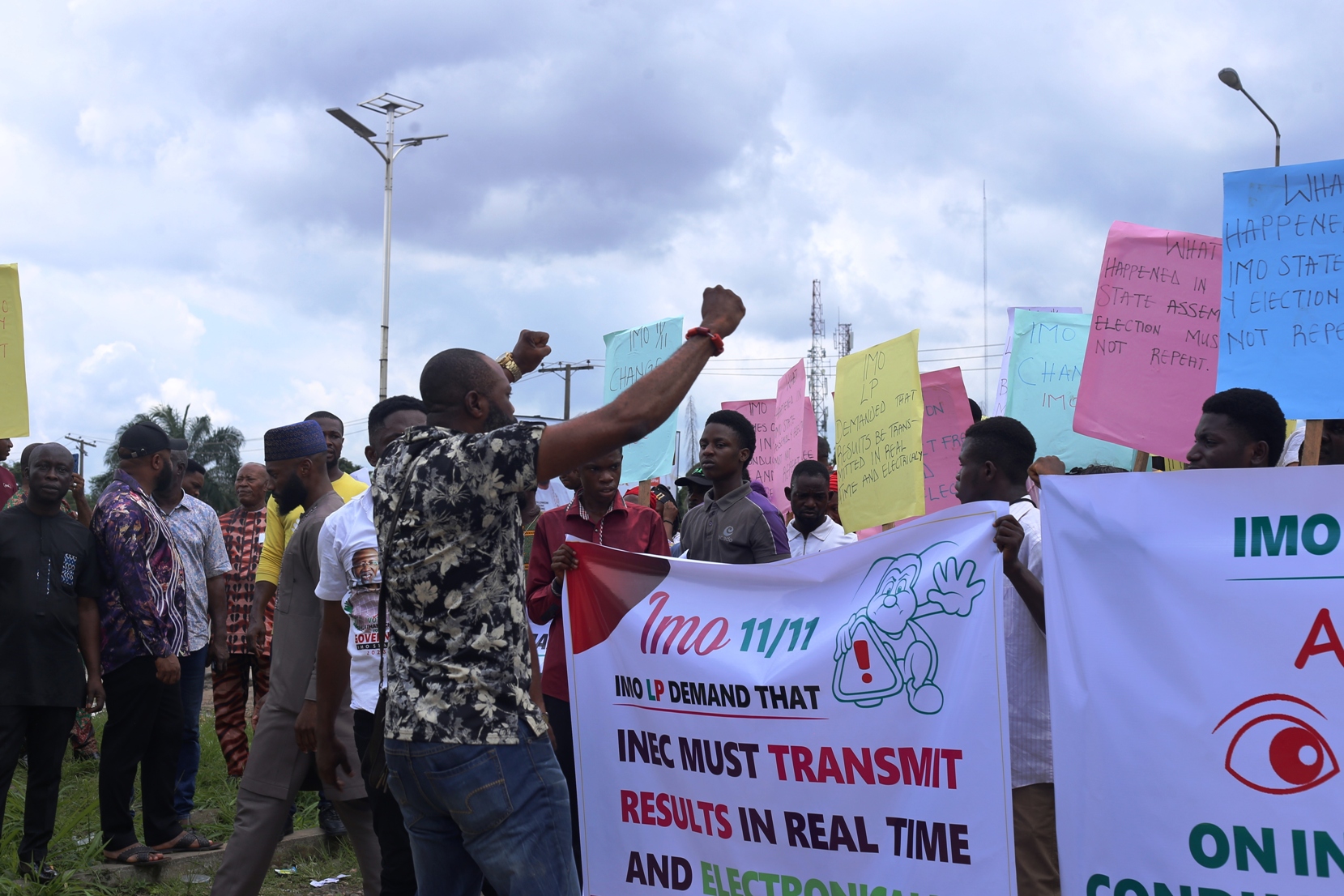 Members of the Labour Party in Imo State led by the state chairman Barr. Carlistus Ihejakwa took to the streets on Thursday to demand the removal of the INEC Residential Electoral Officer in the state.