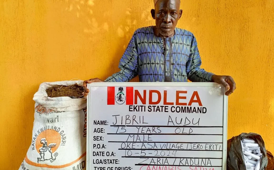 The National Drug Law Enforcement Agency, NDLEA, says its operatives have arrested a 75-year-old grandpa, Jibril Audu, with 7.5 kilograms of cannabis at Oke-asa village, Ijero-Ekiti, Ekiti State.