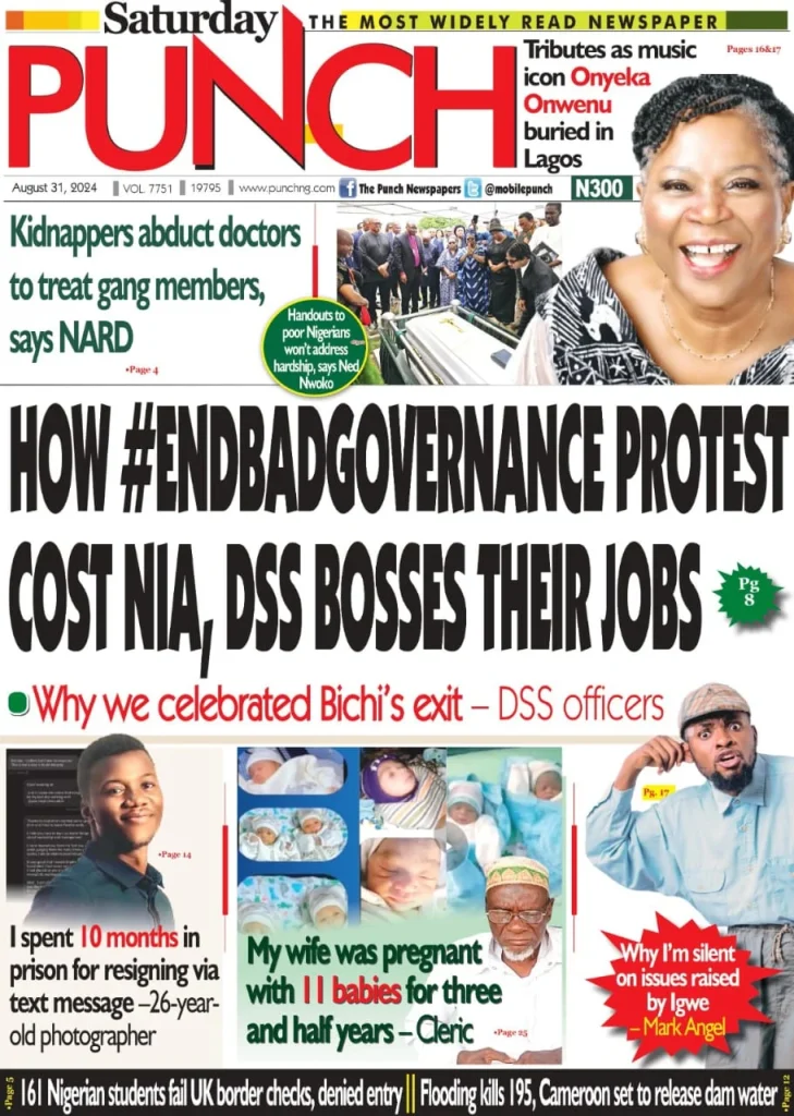 The Punch reports that Yusuf Bichi and Ahmed Abubakar, immediate past directors-general of the Department of State Services (DSS) and National Intelligence Agency (NIA), respectively, resigned their positions following the violent nature of the #EndBadGovernance protests in some northern states and the seizure of three presidential aircraft in France.