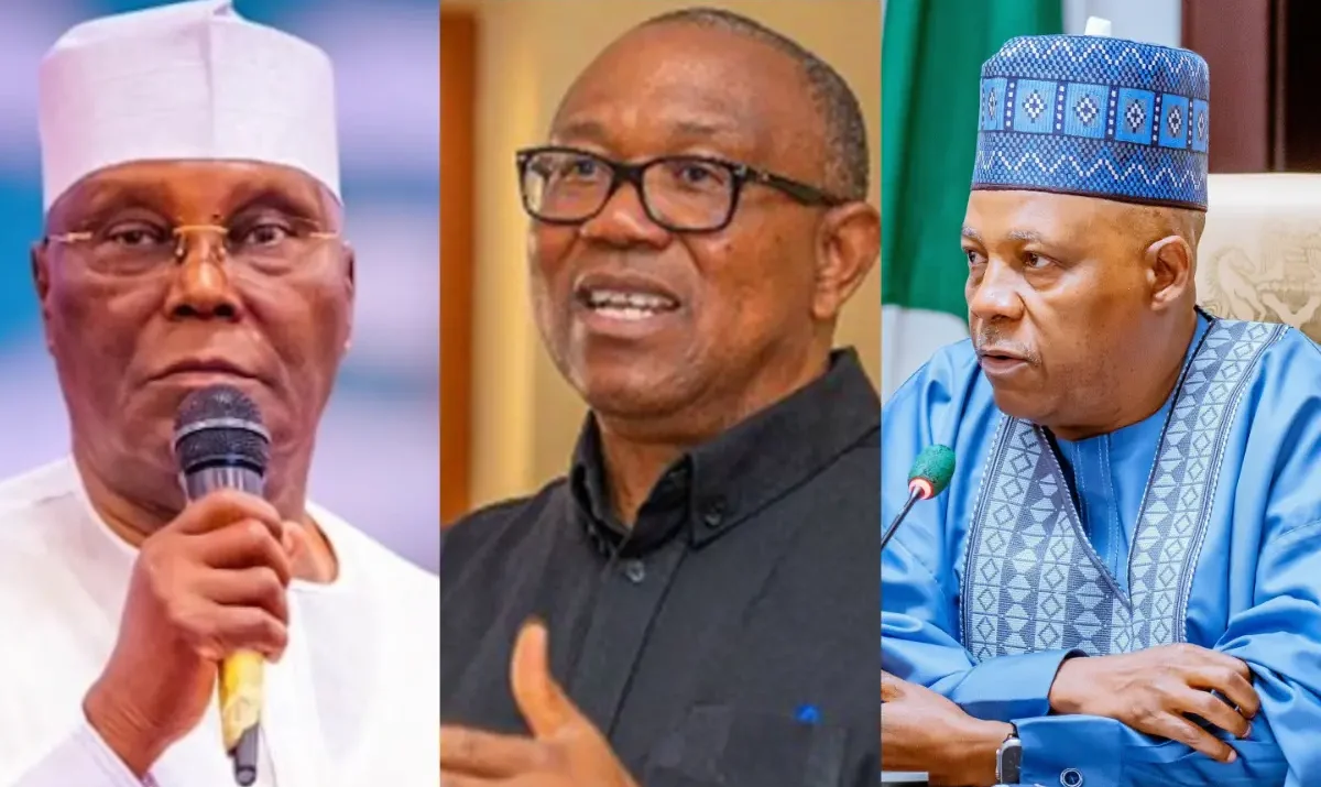 Vice President Kashim Shettima, former Vice President and 2023 PDP presidential candidate Atiku Abubakar, and former Labour Party presidential candidate Peter Obi were seen together in Katsina on Tuesday as they attended the burial of Hajiya Dada, the mother of late President Umaru Musa Yar’Adua.