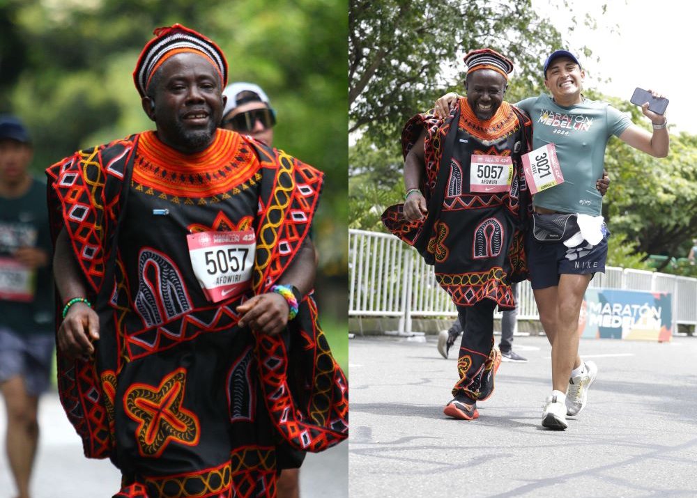 Afowiri Kizito Fondzenyuy, affectionately known as the “Toghu Marathoner” for his signature traditional attire from Cameroon’s North West region, proved once again that the spirit of community is at the heart of his running journey. During the recent Medellin Marathon in Colombia, Afowiri paused his own race to help a struggling runner cross the finish line—a selfless act that quickly became the defining moment of his marathon experience. “Others ignored him, but I couldn’t,” Afowiri explained, emphasizing that his purpose goes beyond personal records. “I run for a different reason.”