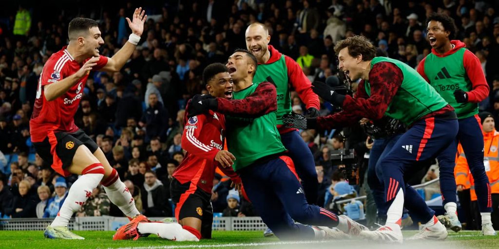 Manchester United pulled off a stunning 2-1 comeback victory over Manchester City at the Etihad Stadium on Sunday, with Amad Diallo and Bruno Fernandes stepping up in the dying minutes to secure bragging rights in the 195th Manchester derby.