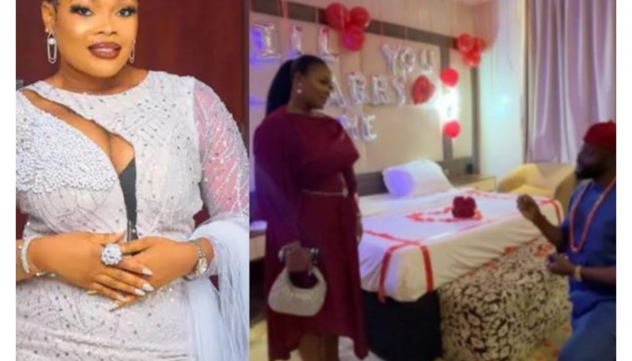 Nollywood actress Ruby Ojiakor has announced her engagement to fellow actor Moc Madu. She shared the news on Instagram, posting a video of the proposal where Madu is seen kneeling and presenting a ring. Ojiakor expressed her joy, captioning the video: “It’s a YESSSSSSSSSSSSSS to the Love of my life, @mocmadu. YES TO FOREVER. Thank you JESUS CHRIST. We dedicate Everything to you LORD.”