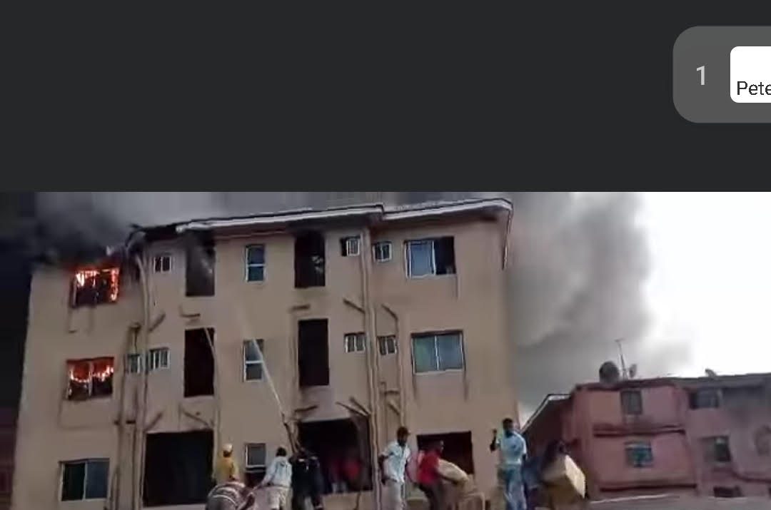 A raging inferno has gutted a two-storey building on Ifejika Street, by Sokoto Road, Onitsha, Anambra State, sending residents into panic as firefighters battle to contain the spread.