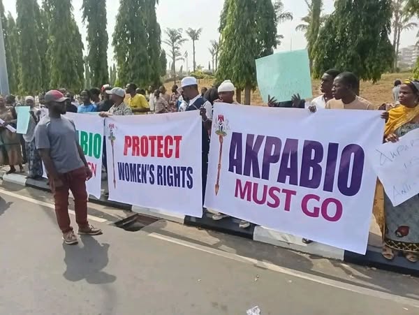 The demonstrators were rallying in support of Akpoti-Uduaghan following her explosive allegation that Senate President Godswill Akpabio had maligned her after she allegedly rejected his sexual advances. The matter, which has ignited nationwide debate, has been referred to the Senate Committee for further investigation.