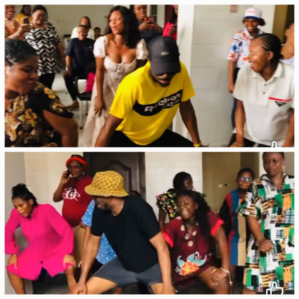 Average of four hospitals,sometimes five. Since I stared this dancing performances in 2023, I have not stopped. There is no week I don’t visit hospitals in the week both government and private. Also, I share gifts to the pregnant women.
