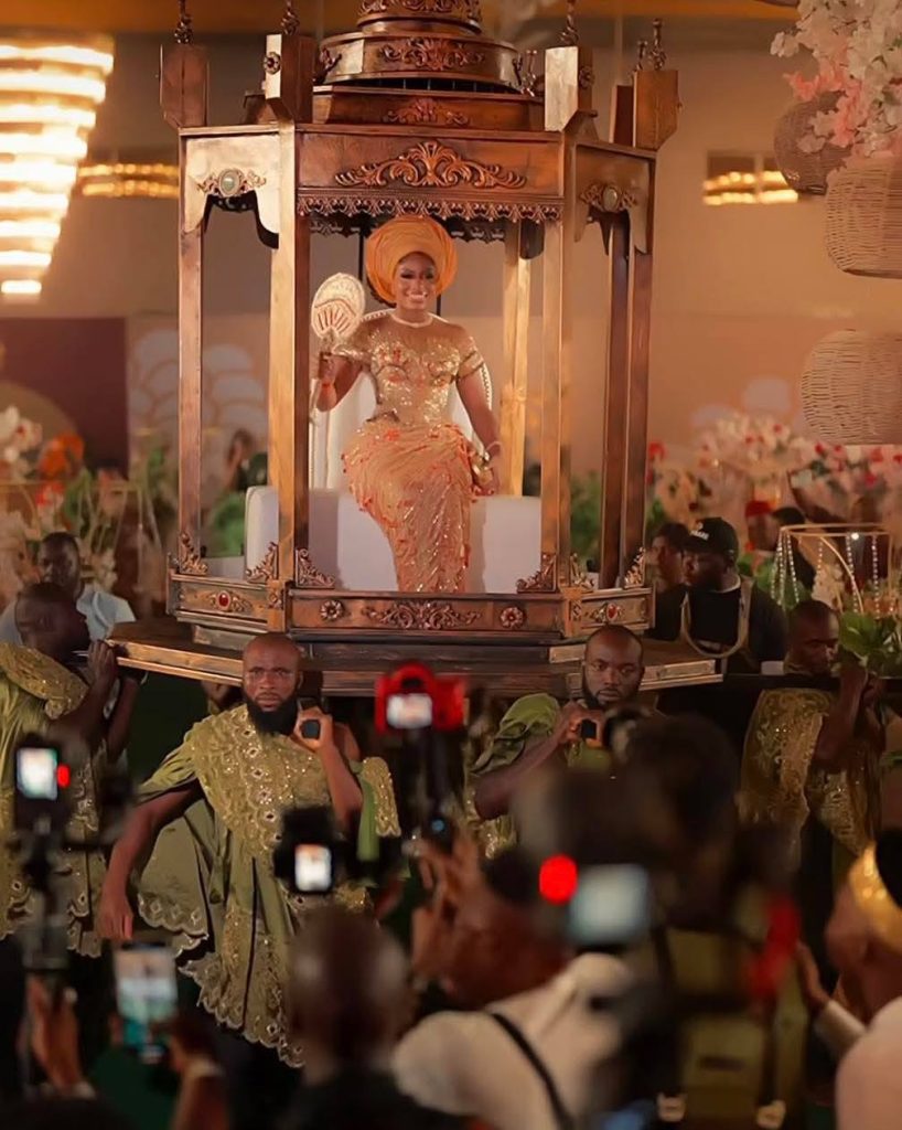Guests were left in awe and the internet shook to its core as the daughter of Nigerian oil magnate and billionaire entrepreneur, Dr. Ernest Azudialu-Obiejesi, popularly known as Obi Jackson, made a royal entrance at her wedding in Anambra on Saturday, April 19, 2025. She was carried into the lavish ceremony seated on a gold-plated palanquin, styled like a throne — an opulent display of wealth and cultural pride that has since taken over social media timelines.
