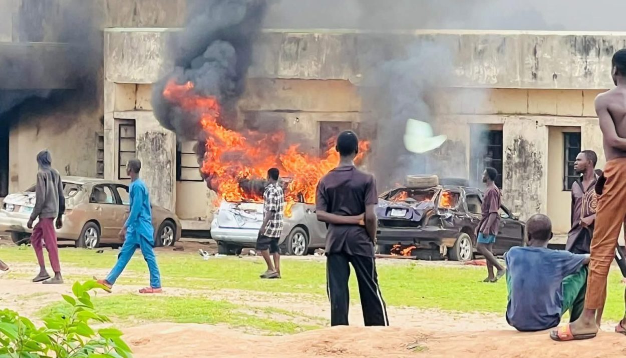 Lafiagi town in Edu Local Government Area of Kwara State descended into chaos on Monday, June 30, 2025, as hundreds of angry youths stormed the streets in a violent protest against rising insecurity and what they described as government abandonment. The protesters set fire to the National Drug Law Enforcement Agency (NDLEA) office and vandalized parts of the Emir of Lafiagi’s palace in a dramatic display of frustration.