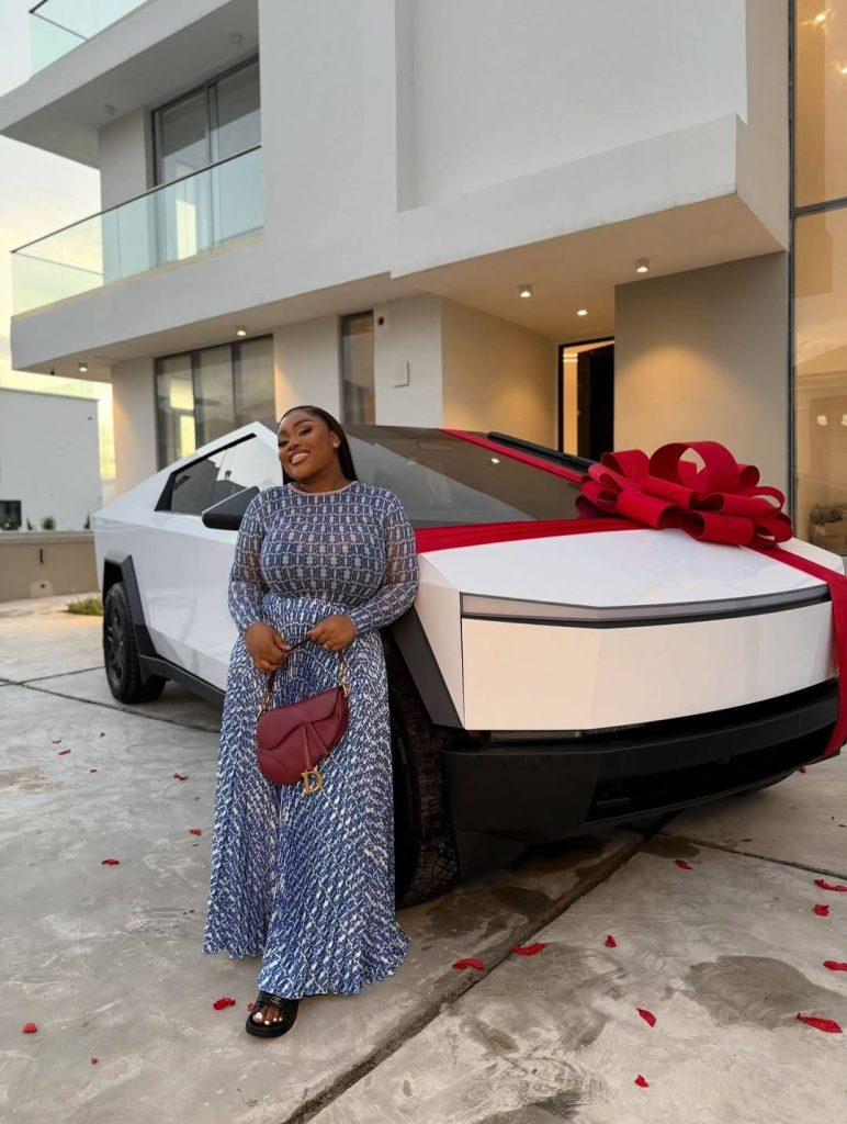 The Tesla Cybertruck, which debuted globally in late 2024, currently retails for between $100,000 and $140,000 (depending on trim and customization), translating to approximately N350 to N420 million after shipping and import duties into Nigeria. Social media influencers and celebrities have flooded her comment section with congratulatory messages, hailing her as “the queen of luxury hustle.”