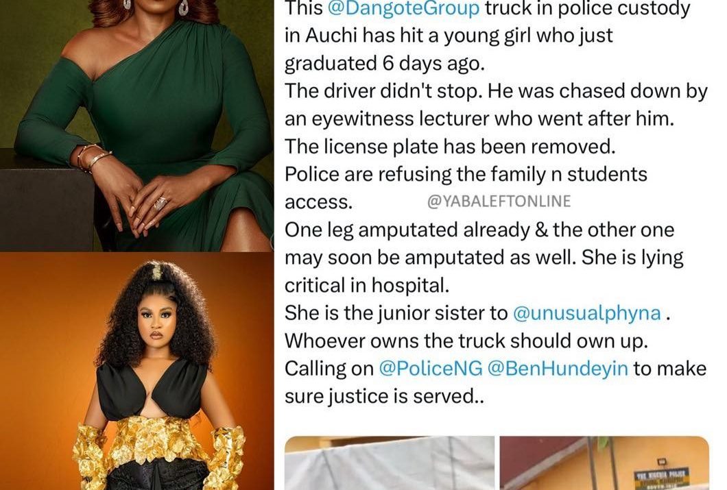 Phyna, who has been by her sister’s side since the accident, expressed deep grief but thanked well-wishers for their prayers and support. She described her sister as “a fighter” and vowed to ensure the matter does not get swept under the rug.