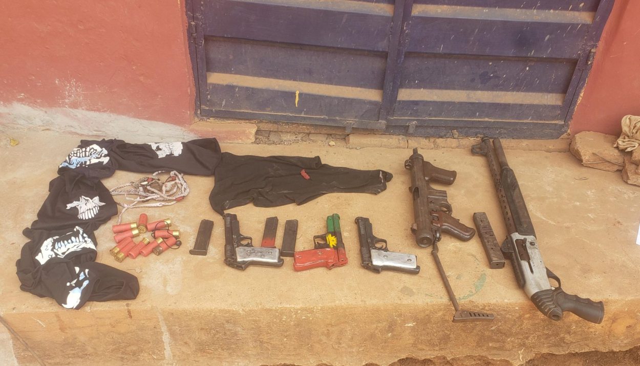 On March 7, one of the suspects led officers from the command’s Anti-Kidnapping Squad to a hideout, where the police recovered a range of weapons and items, including one SMG rifle, a pump-action rifle, three locally made Beretta pistols, eleven rounds of 9mm live ammunition, a shovel, and assorted charms.