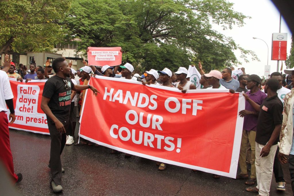 A coalition of opposition heavyweights stormed the headquarters of Nigeria’s electoral body in Abuja, as tensions deepened over the suspension of the African Democratic Congress (ADC).