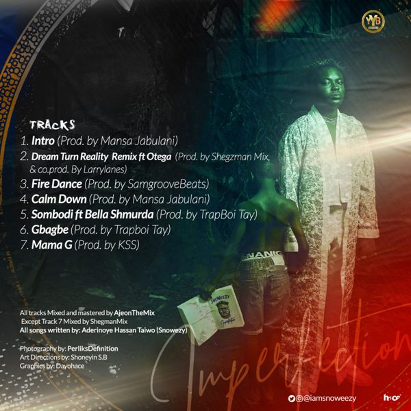 Aderinoye Hassan Taiwo popularly known as Snoweezy puts out his first body of work, a 7 track EP titled “Imperfection“.