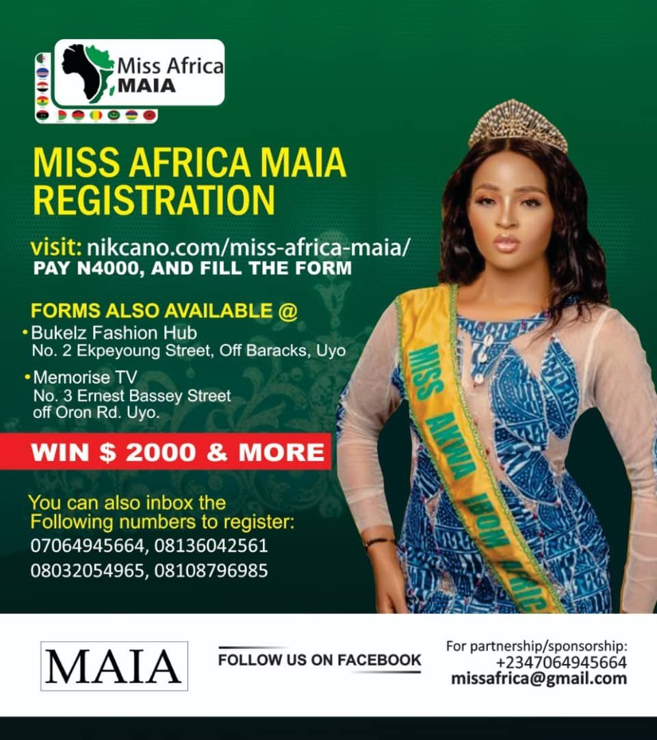 “MISS AFRICA MAIA 3.0” CALL FOR ENTRIES, $2000 Up for Grab