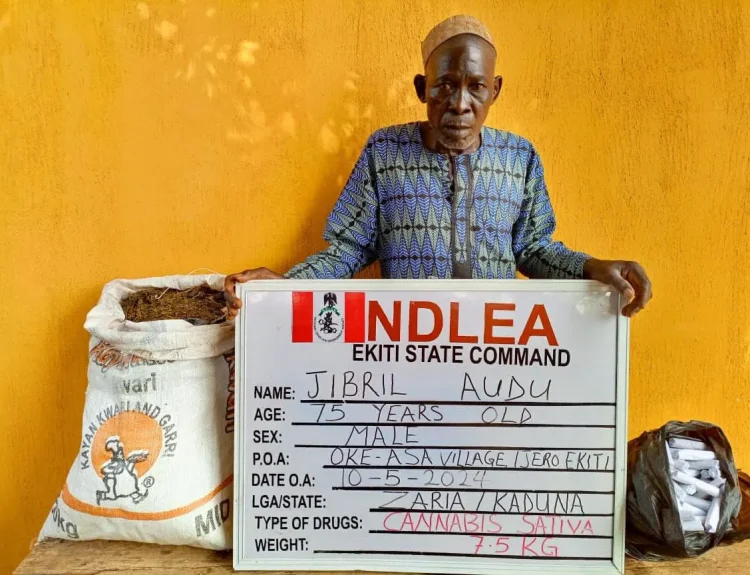 The National Drug Law Enforcement Agency, NDLEA, says its operatives have arrested a 75-year-old grandpa, Jibril Audu, with 7.5...